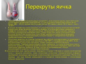 Бывает, что перекрут происходит во сне у подростков. Быстрое обращение в течение шести часов в травмпункт дает возможность на 90% выздоровление, а спустя сутки вероятность сохранения нормальных функций снижается в разы.