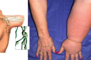После удаления региональных лимфатических узлов происходит тяжелое нарушение дренажной функции в мягких тканях верхней конечности, что вызывает образование отека руки.