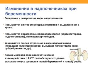 Повышается выработка минералокортикоидов и глюкокортикоидов. Так как вынашивания плода — это своего рода стресс, то секреция кортизола увеличивается.